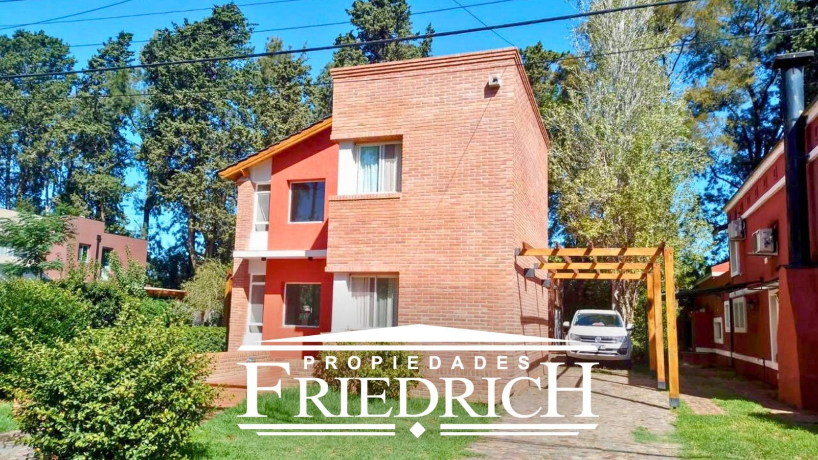 COMODIDADES: En planta baja se encuentra un living comedor súper amplio y luminoso con hogar con revestimiento granítico natural, con doble altura y puerta balcón al exterior que da a galería con pérgola en el lateral de la vivienda. Cocina comedor con mesada de mármol brasil color negro, amoblamiento de melamina, bajo mesada y alacenas, barra desayunadora. En cocina posee una campana extractor. Un dormitorio con placard con interior completo con frente con puerta espejo. Baño de uso exterior. Cuarto de guardado o dependencia de servicio.