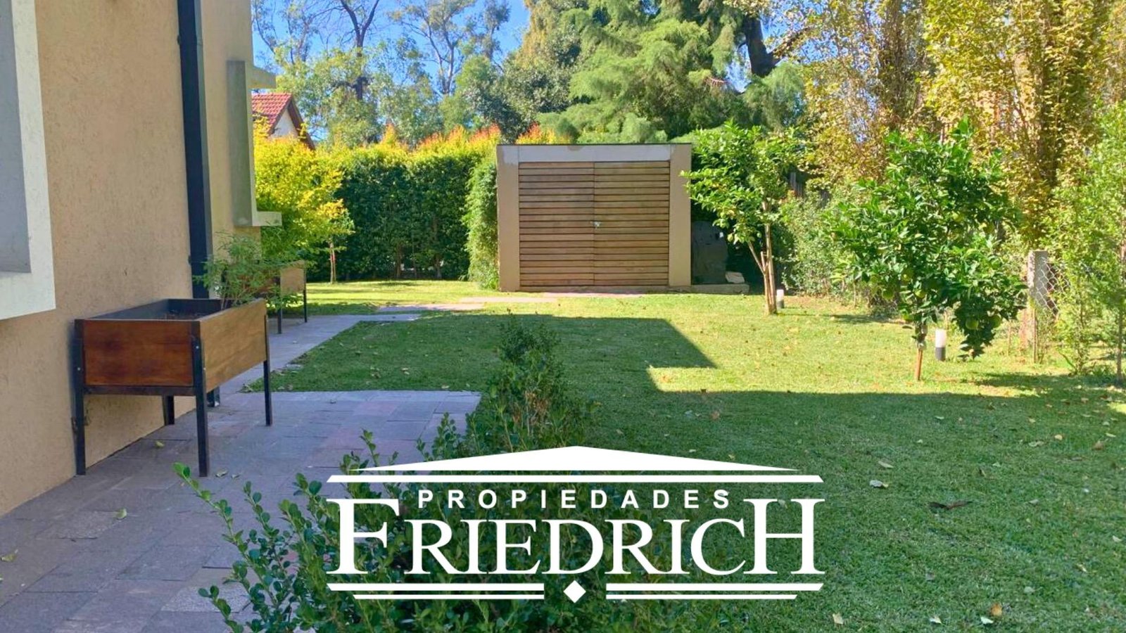 Casa en Venta – 4 AMBIENTES en Cardenal del Monte, General Rodríguez Propiedad con parque y sector de asador. Piscina climatizada, recubierta de venecitas, con luces, cascada e hidromasaje. Galería con cocina equipada y parrilla a gas. Toldos cristal laterales enrollables en la galería con vista a la piscina. Riego por aspersión en todos los sectores. Cuarto de guardado de herramientas. Perímetro del lote con cerco natural. Distribución: En su recepción cuenta con living comedor. Cocina integrada al comedor con barra desayunadora. Totalmente equipada, con mueble bajo mesada y guardado de lavarropas. Puerta lateral desde la cocina, con salida al parque trasero. Toilette de recepción. Tres habitaciones: dos habitaciones junior con placares. Baño en halls de distribución de habitaciones completo con jacuzzi y ducha escocesa. Habitación principal con placares completos y baño en suite con ducha. Aberturas de DVH Calefacción por radiadores.