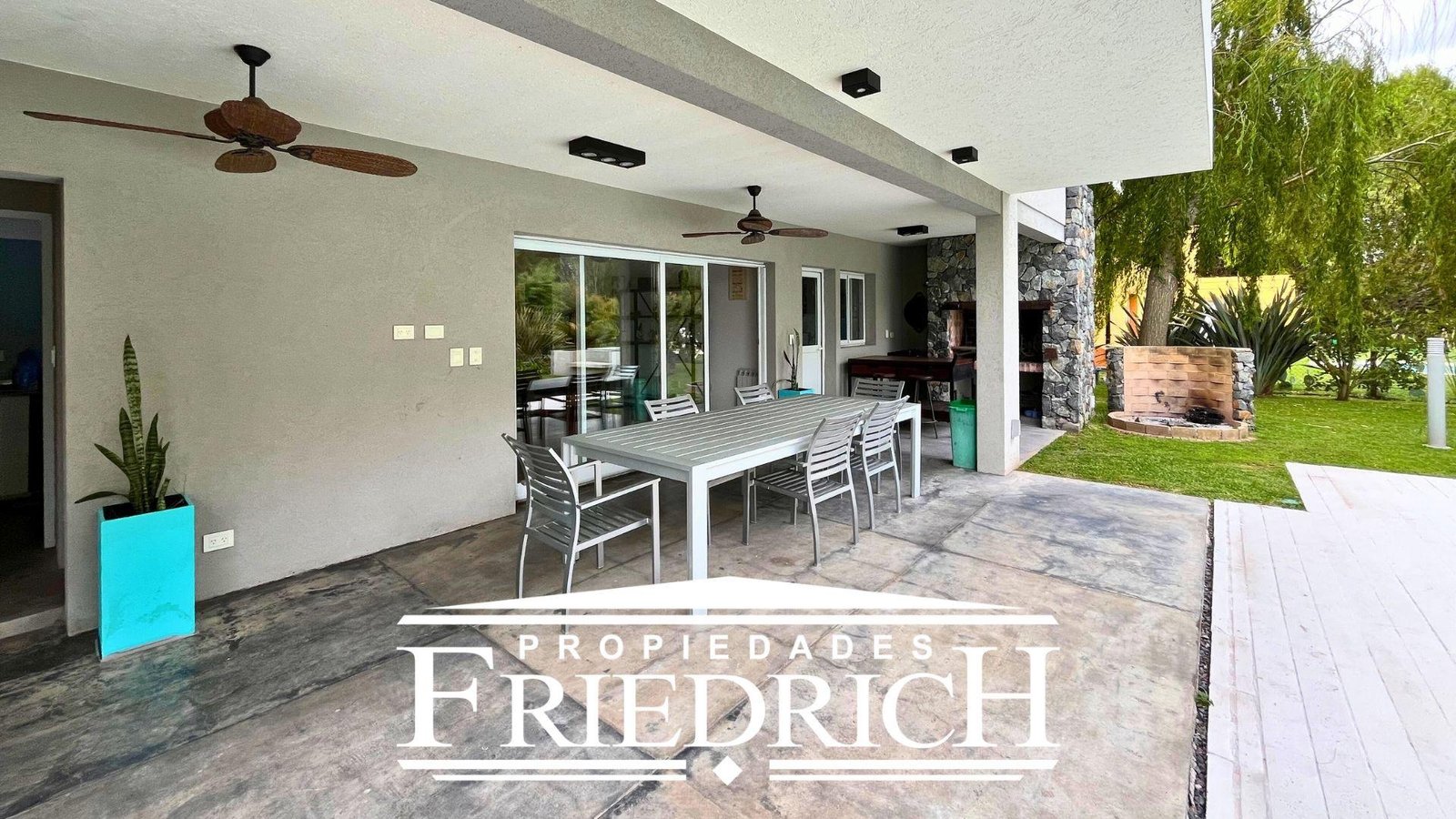 El exterior posee un hermoso jardín con piscina.